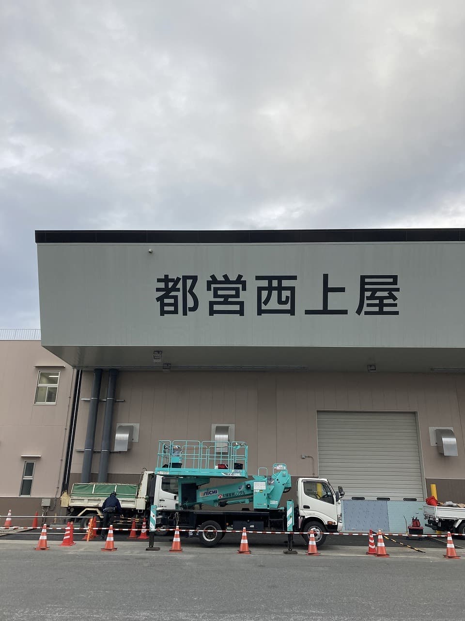 斜めの傾斜面に大文字の設置工事 ガルバニュウム鋼板の耐候性と等々のものと設置方法が難しい現場でした。後工事のため、スーパデッキを使用し作業も事前現場調査打合せにより1日工事で完了しました。1月仕事始めなのと眼の前が東京湾、海風がきつく極限に寒かったです。